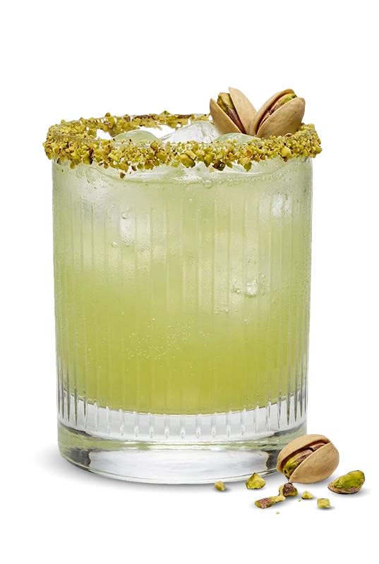 Krusta na okraji pohára z podrvených pistácií a pistácie.